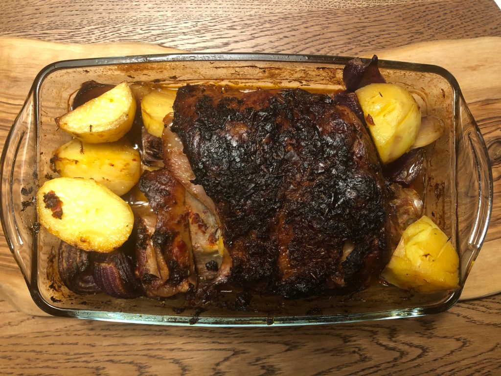 Kırmızı soğan daha güzel karamalize oluyor, kırmızı kullanınız. Pişme süresi 160 derece S da 3 saat. Pişimin 2. saati tamamlandığında kapağını açınız ve 4 e bölünmüş soğan ve patatesleri yanına yerleştirinizve üzeri açık pişirmeye devam ediniz. Son 20 dakikası sadece üstten ısıtma ve süre dolduktan sonra 20 dakika fırının kapağı açık dinlenmeli.