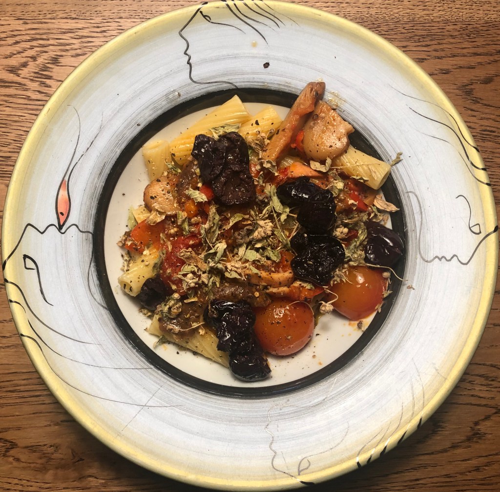 Ancaaak, makarnayı hafif dişe gelir kıvamda pişirdikten ve çekirdeği ayıklanmış zeytini ve dağ kekiğini ekledikten sonra Memecik zeytinyağını üzerinde gezdirip servis ediniz. Kırmızı şarap iyi gider yanında. ‘Ful’ gövdeli, ‘tanenli’ ‘şambre’ edilmiş ‘monosepaj’ bir şarap olan resmini gördüğünüz ‘vintage’ iyi eşlik edecektir.