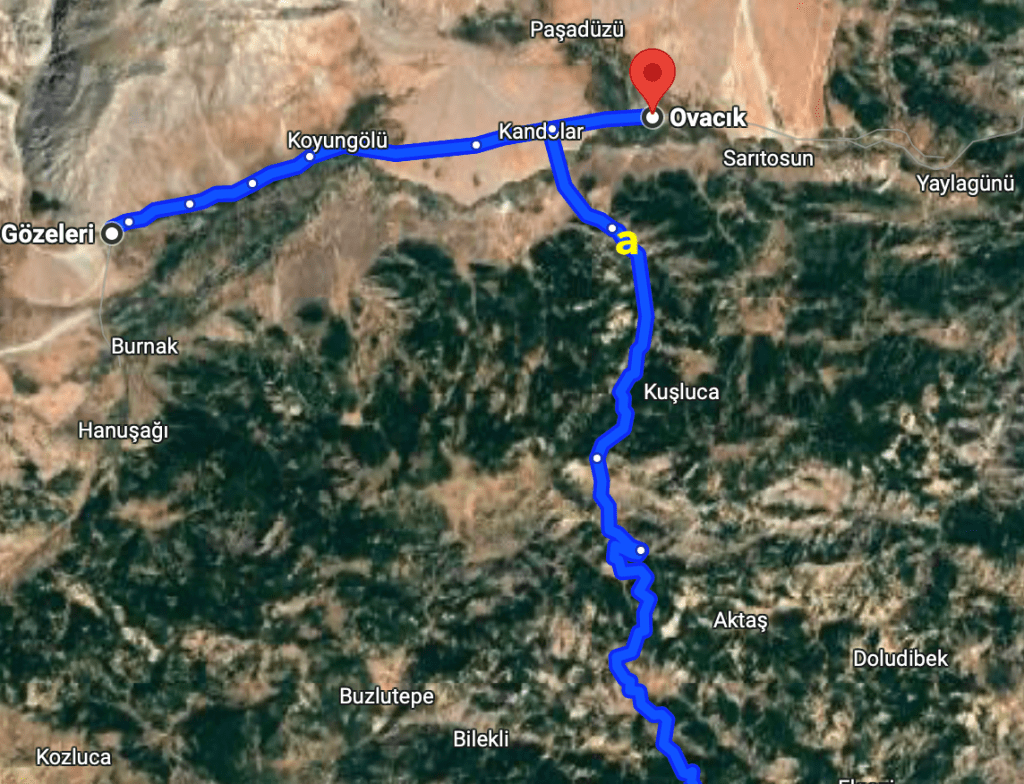 Yol kenarı isimli yerden tazelenmiş, karnı tok, ve güven içinde ayrıldıktan sonra dağlardan aşağıya süzülerek Ovacık’a doğru alçalıyorum. Şimdi çekmediğime üzüldüğüm bir fotoğraf var. Tam bir western fotoğrafı, aşağıda haritadan anlatacağım.