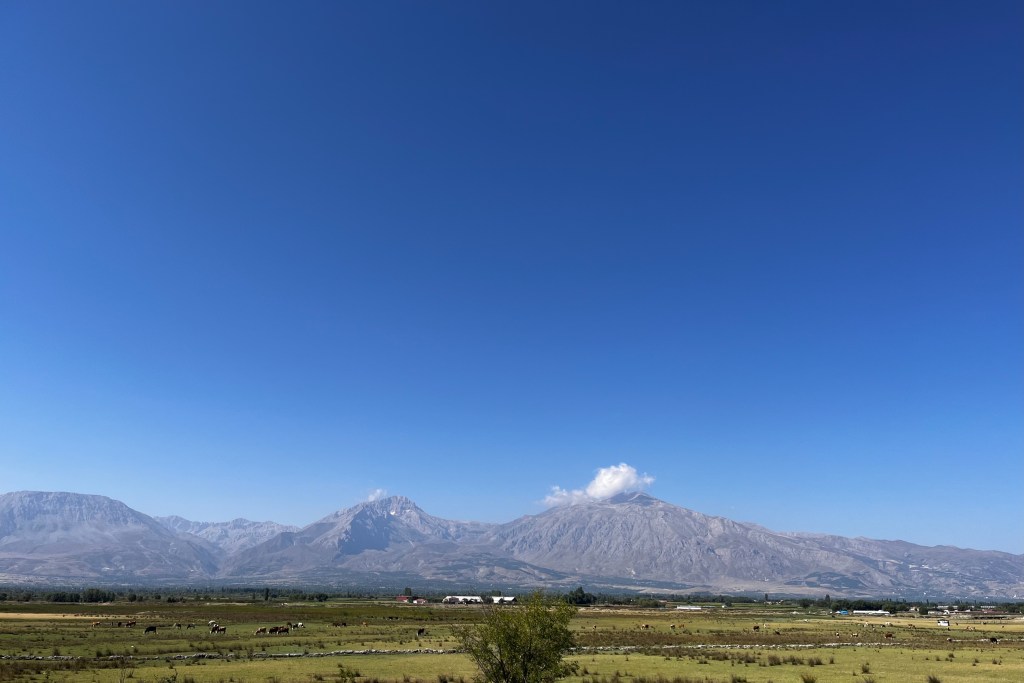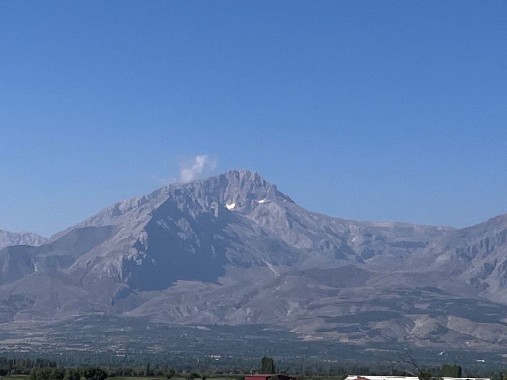 O bulutlu dağın hemen solundaki tepeyi size büyüteyim. Ağustosta kar var, bunlar buzul dağları, bunlar sevgili Munzur sıradağları. Büyük bir olasılıkla o bulutla işaretlenen zirvenin sağındaki dağın arkası Ovacık.