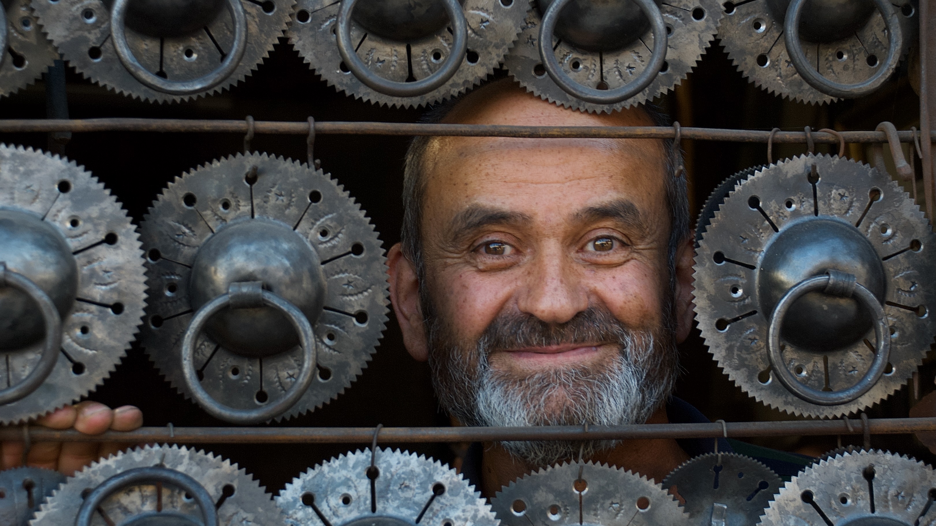 Ama gelin bu anlatının ismini neden Türkilizce koyduğuma. Tarsus’ta okulumuzun bir bahçıvanı vardı. Amerikalı hocalarımız Mustafa the Bahçıvan derledi. Sanırım diğer Mustafalar ile karışmaması için. Kilitçi Hüseyin’in de uluslararası tanınırlığı beni bu başlığa sürükledi. Yoksa demirciler çarşısında kimse ile karışacağı yok, birbirini tekrarlayan fabrikasyon bakıcı ve lokumcular arasında. Hüseyin beyin dükkanına girdiğimde duvarda metal keserken çekilmiş bir fotoğrafını gördüm, zaten aşağıdaki fotoğrafta da elinde. Şakir Eczacıbaşı çekmiş. Sonra da ona göndermiş. Hüseyin the Locksmith’in anlatımıyla “herkes atölyesini hediyelik eşyacıya çevirirken ustamdan aldığım eli inatla korudum”. Locksmith İngilice’de aynı zamanda inatçı insan anlamına da geliyor.