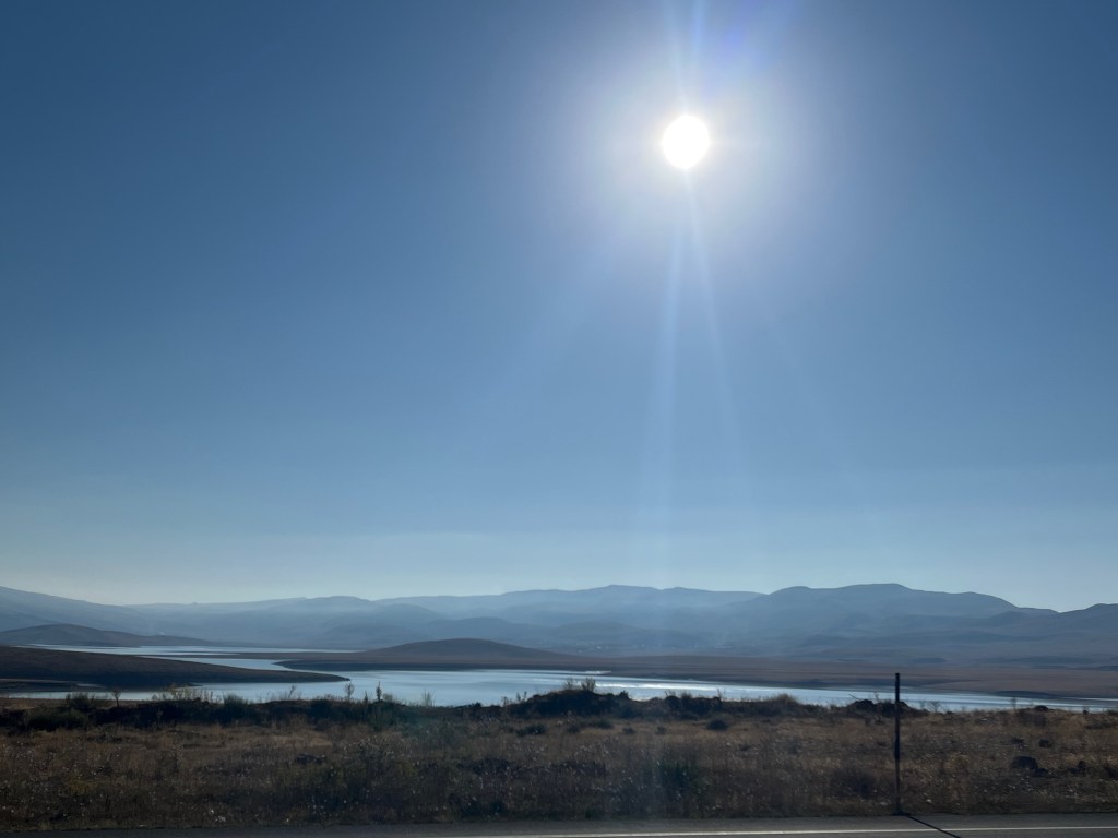 Çok heyecanlı bir yol, aslında nihai hedefiniz Van ise dört yol var. Yukarıda gösterilmeyen Ağrı-Doğubeyazıt-Çaldıran üzerinden giden yol en düzgünü imiş. Düzgün kavramını bölünmüş ve asfaltı yeni yol olarak anlaşılması lazım. Ancak yakın dostum Şefik Görkey mutlaka Ahlat’ı görmem gerektiğini belirtince oraya göre plan yaptım. Plana Ahlat dahil olduktan sonra Van’dan rehber Engin Pişkin ile görüştüm ve onun da tavsiyesi Ahlat a uğramak olunca düşünecek fazla bir şey kalmamıştı. Bu arada yol seçimi ve yol ile ilgili bilgi alma konusunda bildiklerimi biraz anlatmalıyım. Yola çıkmadan iki ay önce gidilecek şehirleri belirliyorum. Sonra güzergahı belirliyorum, belirlenen rota hakkında bilgiyi hem oralardaki yerellerden, tanıdıklarımdan (eski öğrencilerim) ve kurumlardan (valilikler, doğa klüpleri vs) elde ediyorum. Bu kurumlardan biri Karayolları Genel Müdürlüğü’nün web sitesi. Yola çıktıktan sonra rotanızdaki hava durumunu ise Meteoroloji Genel Müdürlüğü’nün yol için hava tahmini sitesinden alıyorsunuz. Ama durun, daha o aşamaya gelmedik. Rota hakkında ön bilgileri aldıktan sonra bir yapay zeka sitesine giderek düzgün bir Türkçe ile ne yapmak istediğinizi tanımlıyorsunuz. Örneğin bu rota için şöyle yazılabilir: “Erzurum’dan Ahlat’a motorsiklet (NT 1100 ) ile Ağustos ayının 20.günü gideceğim. DSLR ile fotoğraf çekmeyi seviyorum, zamanım var, tarihe meraklıyım.” Genellikle YZ size bir rota veriyor. Hatta zaman zaman bu yolun 97.km’sinde gidiş yönünün solunda kalan bir göl var onu ıskalama diyebiliyor. İşte o göl: