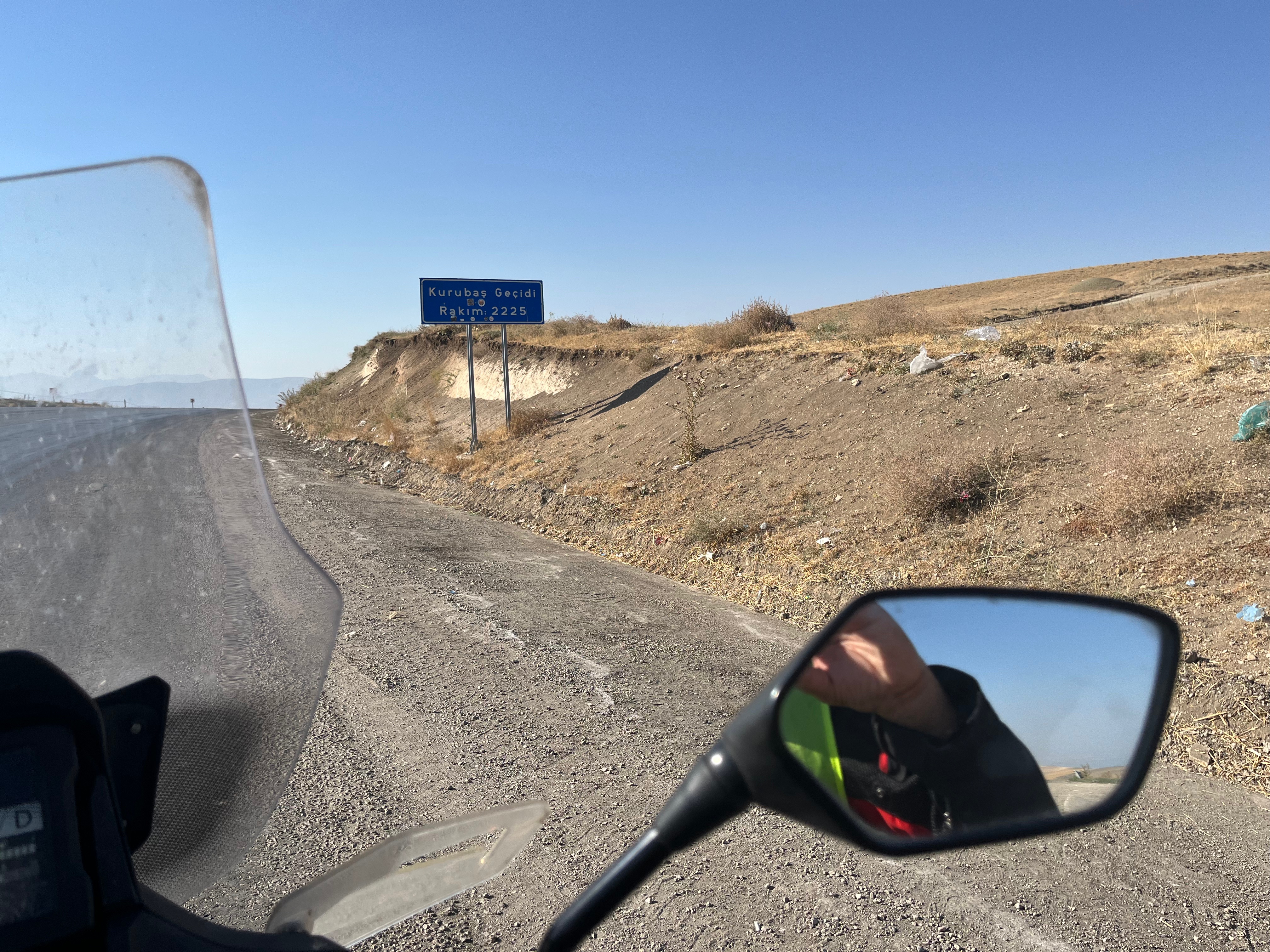 Van’dan çıkar çıkmaz zaten tepelere tırmanıyorsunuz. Bir gece önce tanıştığım motorcudan yakınlarda bir tepeden geçen karayolu olduğunu duyduğum için de haritalardan baktım ve Kurubaş geçidinden geçmeye karar verdim. Takipçilerimden Levent Koralp (Antalya’da periodontoloji uzmanı) sağdaki ekran görüntüsünü almış. 1700 m’de olan Van şehrinden birden 500 m yükseliyorsunuz. Ama bu Anadolu’da sürpriz değil. Tabii ki zirvede fotoğrafı aldım. Bu arada meraklısına bilgi etrafta “düzensiz göçmenler” için yapılmış barınma tesisleri var. Bu düzensiz göçmenlik bana hep “politically correct” kavramını hatırlatır.