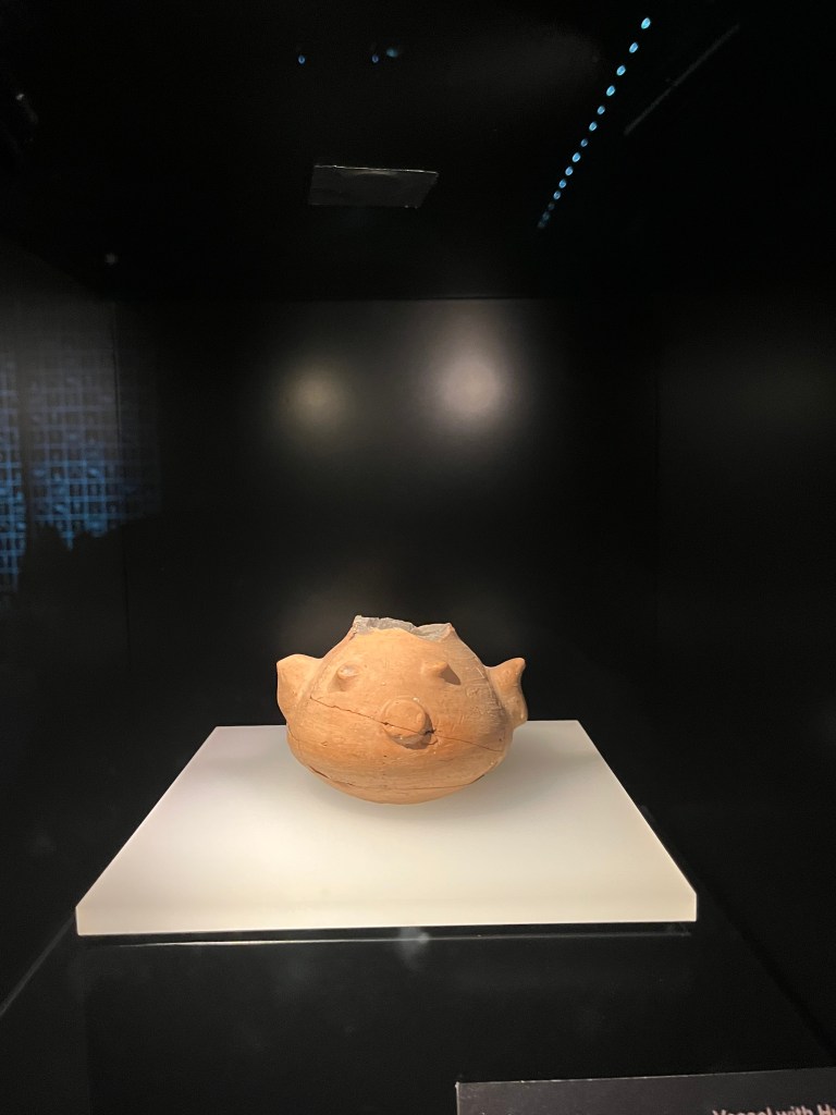 Her şeye rağmen bu güzel binanın içinde ve nadir olan koleksiyonun yanıbaşında olmanın keyfi ve mutluluğunu kelimelerle anlatmak imkansız diye düşünürken cep telefonu ile yüksek sesle konuşan “özel güvenlik” Tanrı BES (Mısır tanrısı, bu heykel Kıbrıs’ta bulunmuştur) ile sizin aranıza giriyor. O sırada bu pozu çekiyor olmanıza aldırdığını pek sanmıyorum, hatta farkında bile olmayabilir.