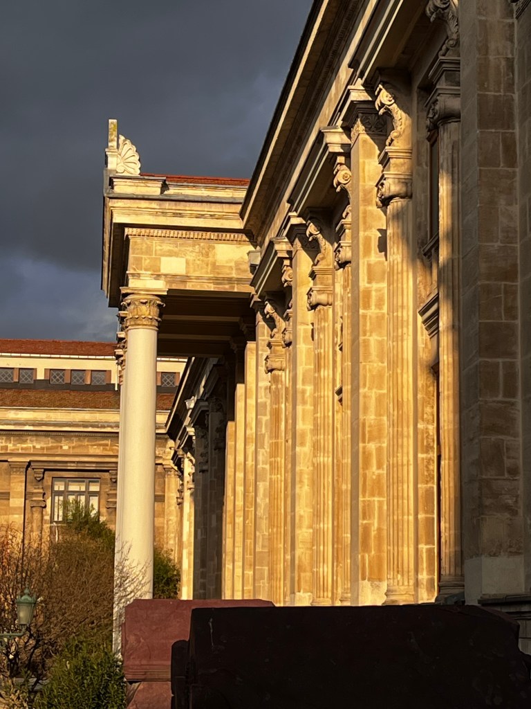 İstanbul Arkeoloji Müzeleri, bu resmi adı, zira aslında aynı bahçe içinde Eski Şark Eserleri Müzesi, Çinili Köşk Müzesi ve Arkeoloji Müzesi var olmakla birlikte düzenli ziyaretlerime başladığım 2020 yılından beri ilk ikisini gezmek hiç mümkün olmadı zira restorasyonları aralıksız devam etmektedir. Altıncı yılda hala kapalıdırlar. Gezebildiğiniz 1/3 lük kısmı bile dünyadaki en önemli 10 arkeoloji müzesi içine girmektedir. Pahallı bir müze olmamakla birlikte gezemediğiniz bölümler için indirim yapılmamaktadır. Sağda müze binasının ana girişini görmektesiniz.Müze binası olarak yapılan bu ihtişamlı yapı büyüleyici..