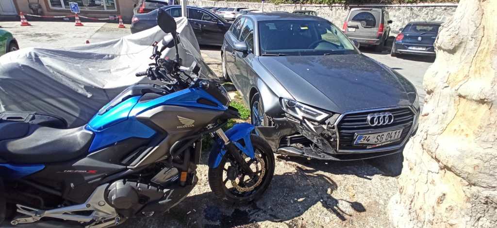 Zeynep hanım navigasyon cihazını ayarlarken sanırım ekrana biraz uzun bakmış. Allah’tan Zeynep hanımın sigortacısı beni doğru yönlendirdi ve motor perte çıktı. Gördüğünüz gibi şansıma güvenmesem de şanslıyımdır, hem ben pert olmadım hem de sigortacım Serkan Çamur tamı tamına karşıladı.